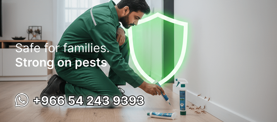 At Kafaa Al Naqaa, we use advanced and safe techniques to eliminate spiders without putting your family or pets at risk. Our treatment includes applying professional-grade residual insecticides around baseboards, corners, window frames, outdoor walls, and other strategic zones. We also remove visible spider webs to disrupt their nesting cycle and discourage future activity. All products used are approved for residential and commercial environments and meet Saudi safety standards.